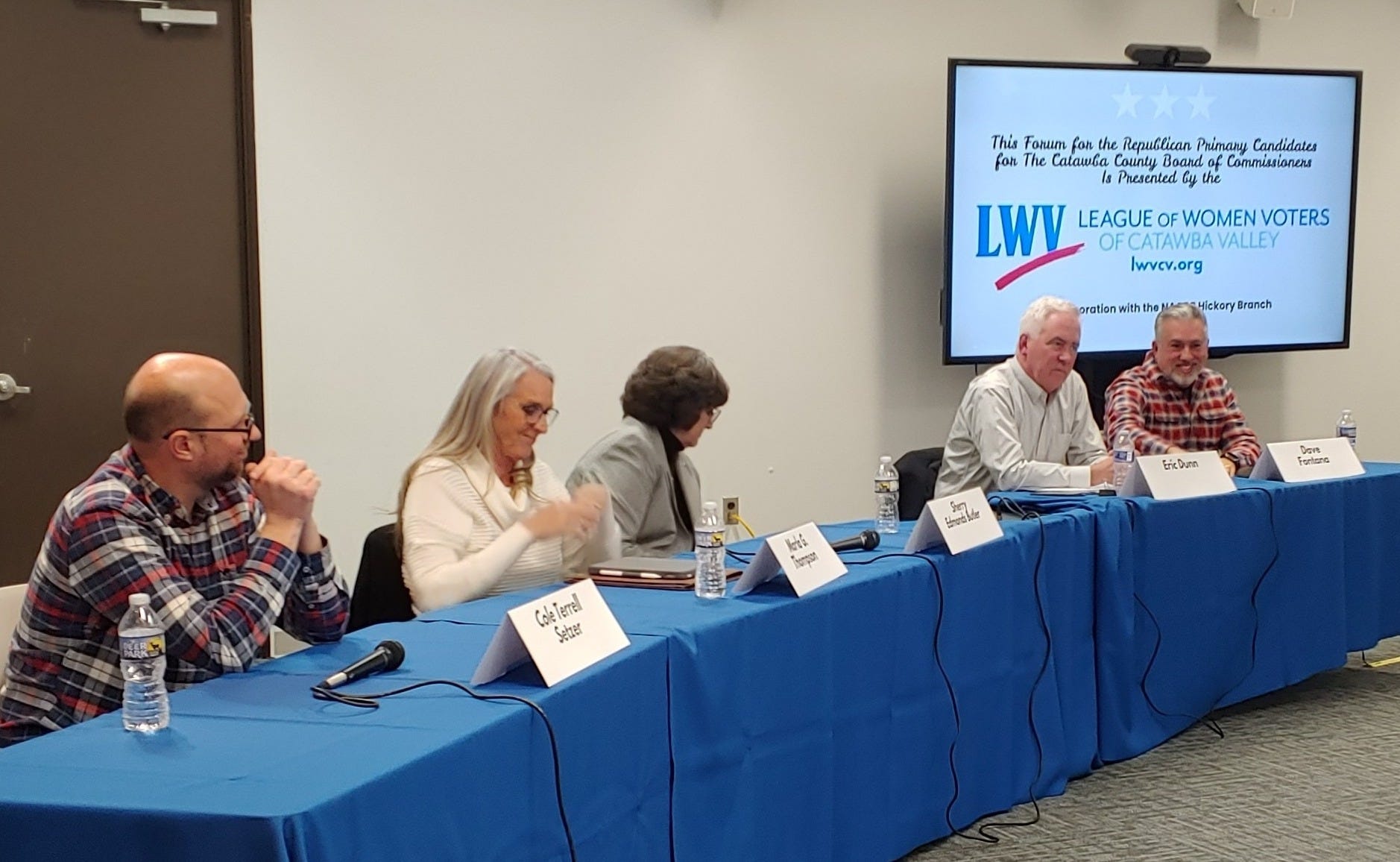 Candidates in attendance were Marla Thompson, Sherry Butler, Eric Dunn, Dave Fontana, and sitting Commissioner Cole Setzer.